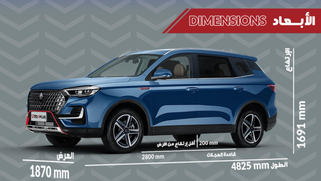 تتمتع VGV U70 P بأبعاد مثالية تجعلها سيارة عائلية رحبة ومريحة، حيث تم تصميمها بعناية لتوفير مساحة داخلية واسعة تلبي احتياجات العائلات الكبيرة.