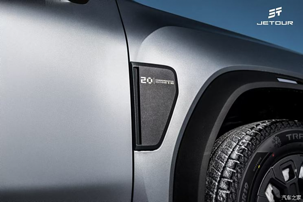 يتميز الإصدار التذكاري من جيتور T2 بتصميم خارجي فريد يجسد الطابع الرياضي والقوة. تُبرز السيارة شعارات حصرية تحمل الرقم 200,000، والتي تتواجد بشكل أنيق على الصدام الخلفي، الرفارف، عتبات الأبواب، والتطريز الداخلي، مما يضفي لمسة من التميز والاحتفال على التصميم العام للسيارة.