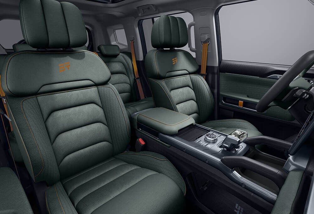 - مقاعد جلدية قابلة للتبريد والتدفئة: تتميز المقاعد بتقنية متطورة تتيح للسائق والركاب ضبط درجة الحرارة وفقًا للظروف الجوية، مما يوفر راحة مثالية في جميع الفصول.