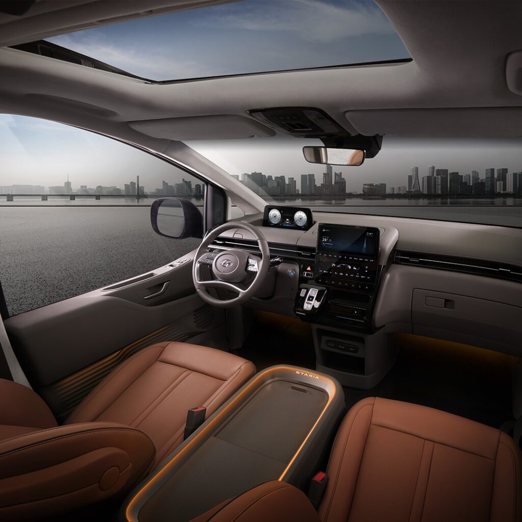 تُعد المقصورة الداخلية لسيارة هيونداي STARIA الهايبرد مثالًا رائعًا على الجمع بين الفخامة والراحة، حيث تم تصميمها لتوفير تجربة قيادة استثنائية تلبي احتياجات الركاب والسائق على حد سواء. كل تفاصيل التصميم الداخلي تهدف إلى تحسين الراحة مع لمسات أنيقة تضفي على السيارة طابعًا فاخرًا.