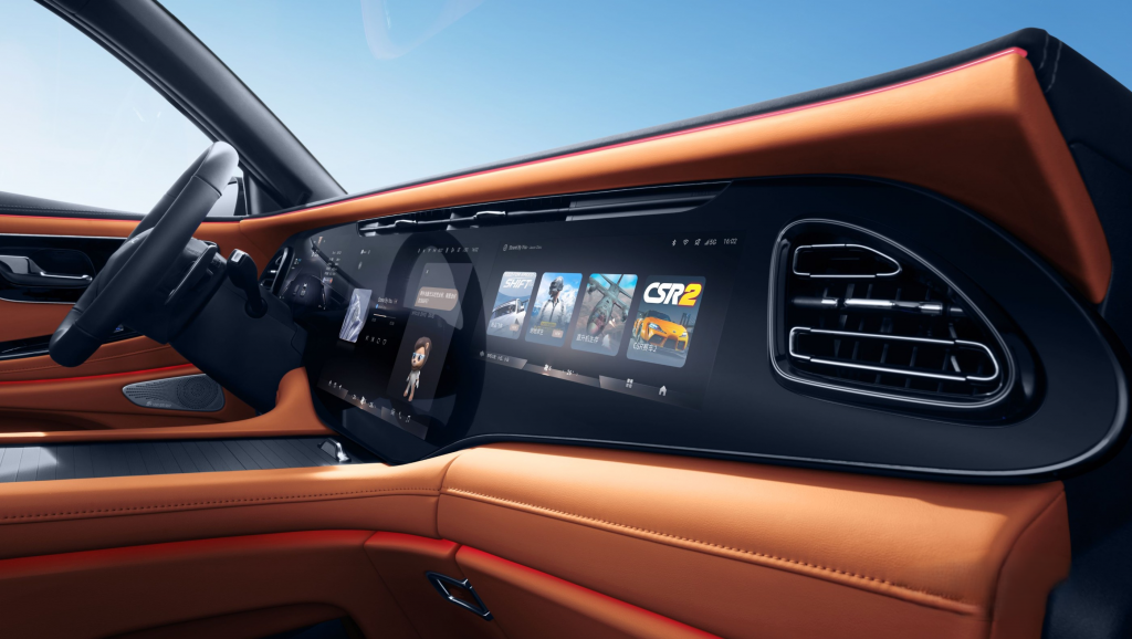 - شاشات متطورة: شاشة معلومات وترفيه ضخمة تدعم Apple CarPlay وAndroid Auto، وشاشة عدادات رقمية بالكامل تعرض معلومات القيادة بوضوح.