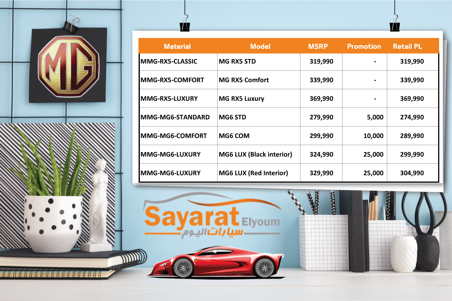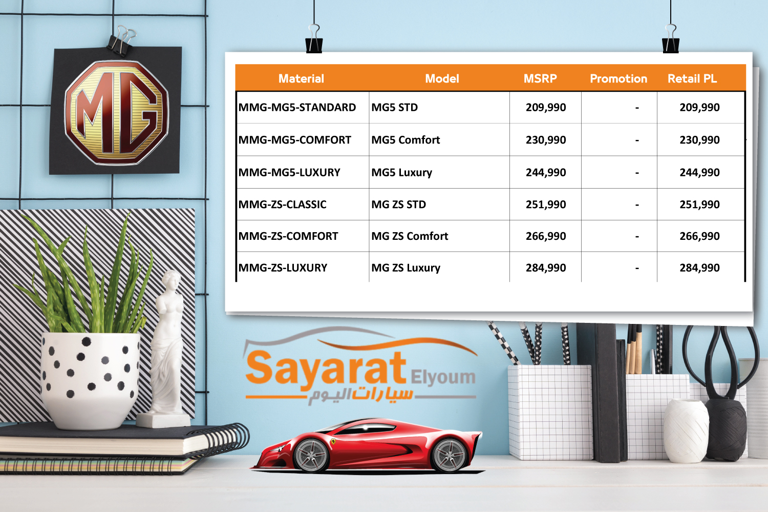 أعلنت شركة المنصور للسيارات وكيل ماركة “MG” الإنجليزية الأصل، عن قائمة أسعار سيارات MG لشهر مايو 2020، حيث شملت القائمة عدد كبير من موديلات MG منها: MG 360 و MG ZS و MG RX5.