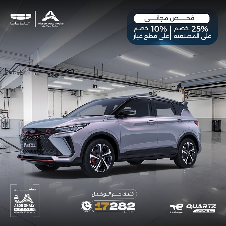في خطوة جديدة تهدف إلى تعزيز تجربة العملاء وتقديم خدمات متميزة، أعلن مركز الأصيل أوتوموتيف، الشريك الاستراتيجي لشركة أبو غالي موتورز والوكيل المعتمد لسيارات جيلي في مصر، عن إطلاق عرض حصري لملاك سيارات جيلي. العرض يبدأ من 7 ديسمبر ويستمر لمدة شهر كامل، ليمنح العملاء فرصة الاستفادة من خدمات مميزة بأسعار تنافسية.