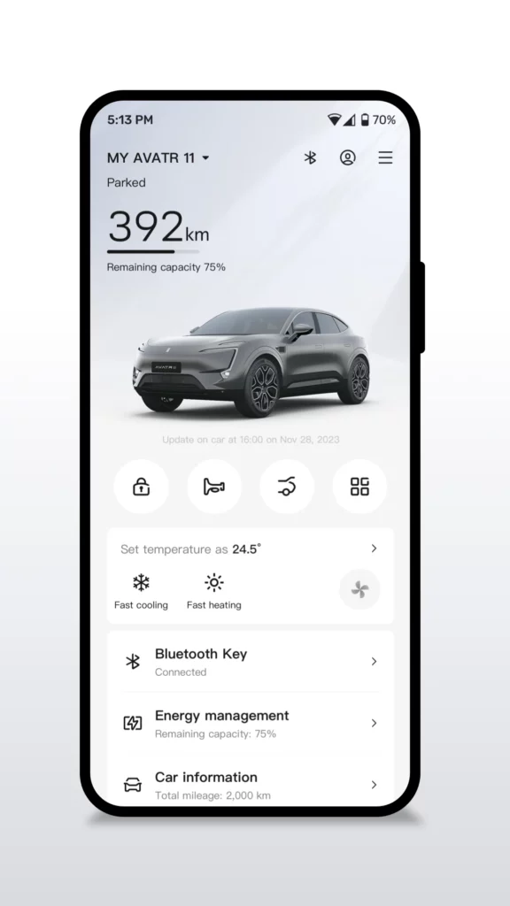 يقدم تطبيق AVATR الذكي تجربة متكاملة للتحكم بالسيارة عن بُعد، من خلال واجهة سهلة الاستخدام ووظائف متقدمة تعزز من الراحة، الأمان، وكفاءة استهلاك الطاقة. فيما يلي أبرز المميزات التي يوفرها التطبيق: