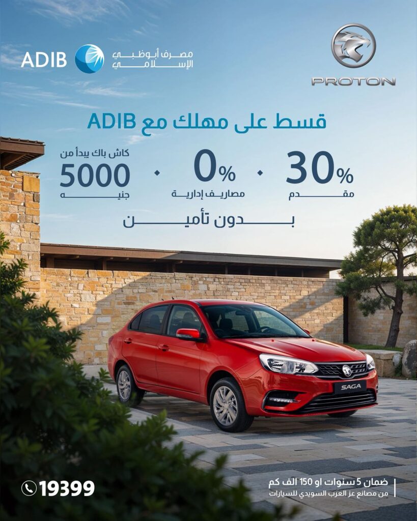 بالتعاون مع شركة عز العرب – السويدي، أعلن بنك أبو ظبي الإسلامي – مصر (ADIB) عن عرض تمويلي استثنائي لشراء بروتون ساجا 2026.