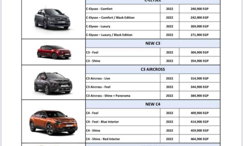 وشهدت القائمة السعرية، طرح سيتروين c4 الجديدة كليا بسعر يبدأ من 410 ألف جنيه للفئة الأولي و415 ألف جنيه للفئة الثانية، و460 ألف جنيه للفئة الثالثة و465 ألف جنيه للفئة الأعلي تجهيزا.