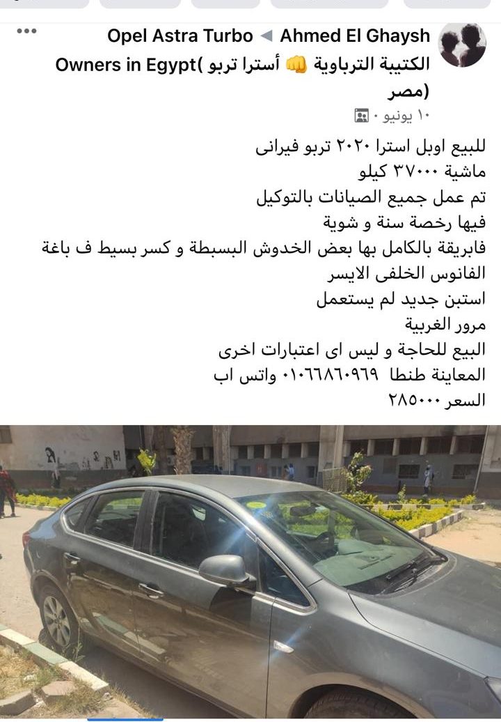 أحد الملاك يعرض سيارته في يونيو بمليغ 285 ألف جنيه وهي موديل 2020