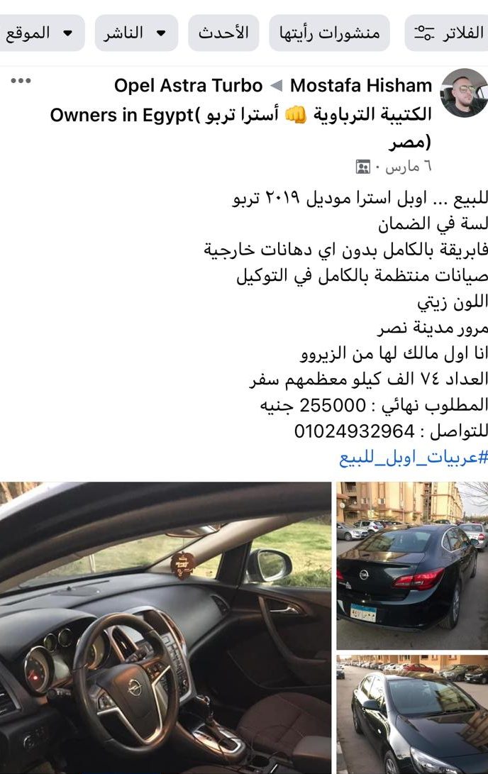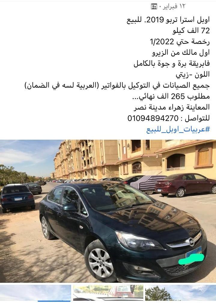 أحد الملاك يعرض سيارته في فبراير بمليغ 265 ألف جنيه وهي موديل 2019