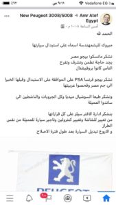حرصـاً من إدارة شركة “مانسكو” وكيل بيجو في مصر، على مساندة عملائها والسماع لمشاكلهم ومحاولة حلها، قررت الشركة استبدال بيجو 5008 لأحد الملاك بسبب عيب في الصناعة.