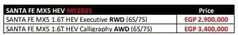 وفقًا لأحدث قائمة أسعار جاءت الأسعار الرسمية لهيونداي سانتافي 2025 كما يلي: