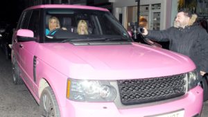 عارضة الأزياء الأمريكية ”كاتي برايس“ في سيارتها الرينج روفر.