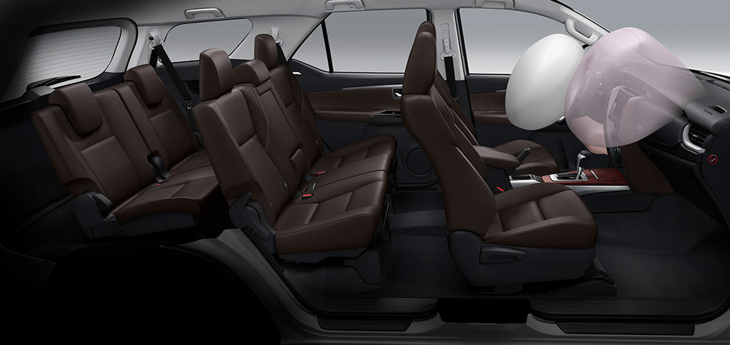 أعلى فئات فورتشنر تتخطى ثمنها المليون جنيه ولا تمتلك غير ثلاثة وسائد هواء فقط، مع العلم بأنها تتسع لسبعة ركاب أى أنها من المفترض أن تمتلك 12 وسادة هوائية على أقل تقدير، منها وسادتي هواء ستائريتين بطول الثلاثة صفوف من المقاعد لحماية رؤوس جميع الركاب، جدير بالذكر بأنها تتوفر بدولة مثل الهند ب7 وسائد هوائية، منها وسادتين ستائرتين بطول السيارة.