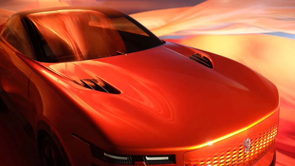 تكشف الصور التشويقية عن سيارة ذات طابع جريء بلون برتقالي لافت، وتُظهر خطوط تصميم انسيابية تشير إلى سيارة كوبيه ضخمة ومهيبة.