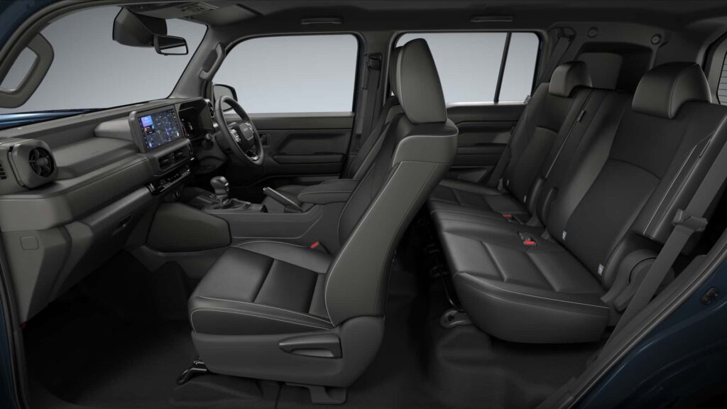 المقصورة البلاستيكية تحتوي على ناقل حركة بارز ومجموعة من المفاتيح المركزة على الطرق الوعرة. يمكننا أيضًا إلقاء نظرة على الصف الثاني الضيق، والذي قد يكون قادرًا على الانزلاق للأمام والخلف. في حين أن هذا لا يزال غير مؤكد، قالت الشركة إن السيارة ستأتي مجهزة بمجموعة Toyota Safety Sense من أنظمة مساعدة السائق.