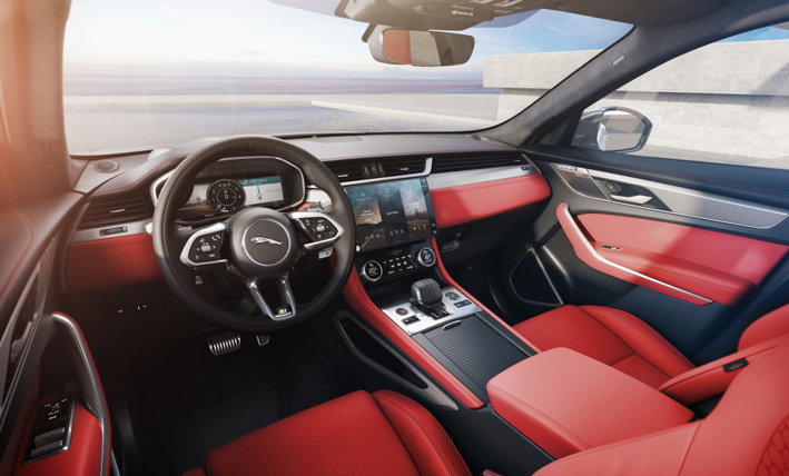 ومع تصنيفها كسيارة خدمية رياضية كروس أوفر Crossover SUV متوسطة الحجم, تخرج سيارة جاجوار بلمسات أكثر رياضية وتقنية.