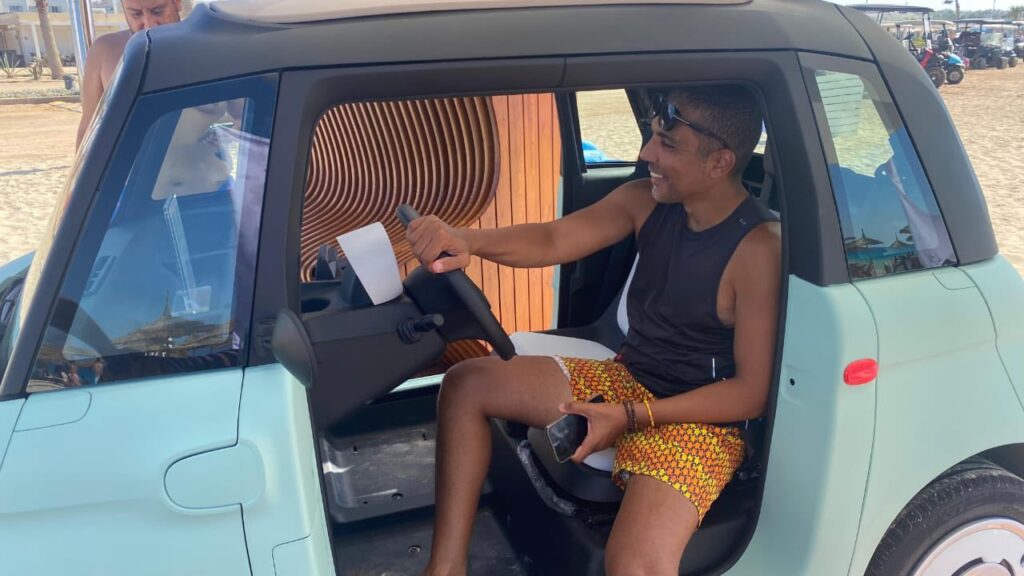 هذه السيارة الصغيرة، بتصميمها الإيطالي العصري وبصمتها البيئية النظيفة، أثارت حالة من السعادة والانبهار بين زوار المنتجع، مما يعكس نجاحها في جذب الانتباه كواحدة من الابتكارات الأوروبية الرائدة في فئة السيارات الكهربائية الصغيرة.