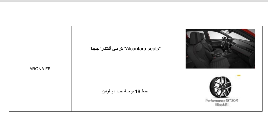 بينما شهدت الفئة الثالثة FR من سيات أرونا 2021 إضافة تحديثات كراسي ألكانتارا الجديدة وجنوط 18 بوصة جديد ذو لونين.
