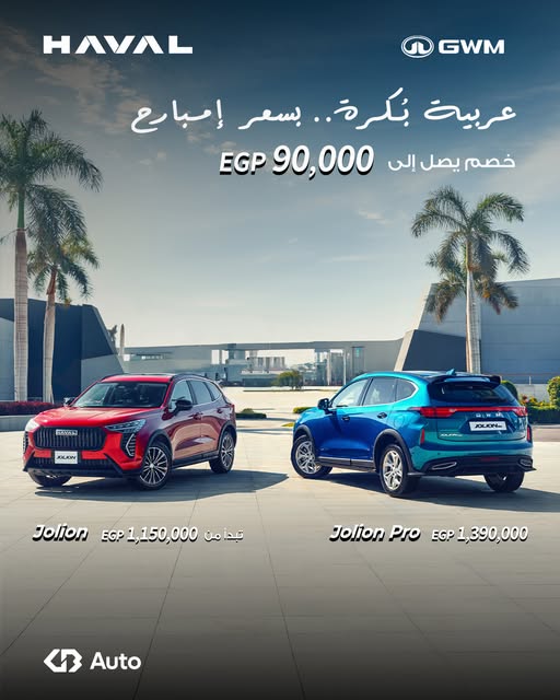 العرض يشمل تخفيضات تصل إلى 90,000 جنيه على طرازات هافال المختلفة، بالإضافة إلى تسهيلات تمويلية استثنائية بالتعاون مع مصرف أبوظبي الإسلامي – مصر.