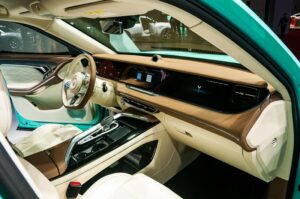 جاءت voyah مع تصميم داخلي أنيق ومقصورة قيادة فارهة تحمل 3 شاشات كل واحدة منهم بوظائف مختلفة وكلها تعمل باللمس وتوفر نظام خرائط حديثة .