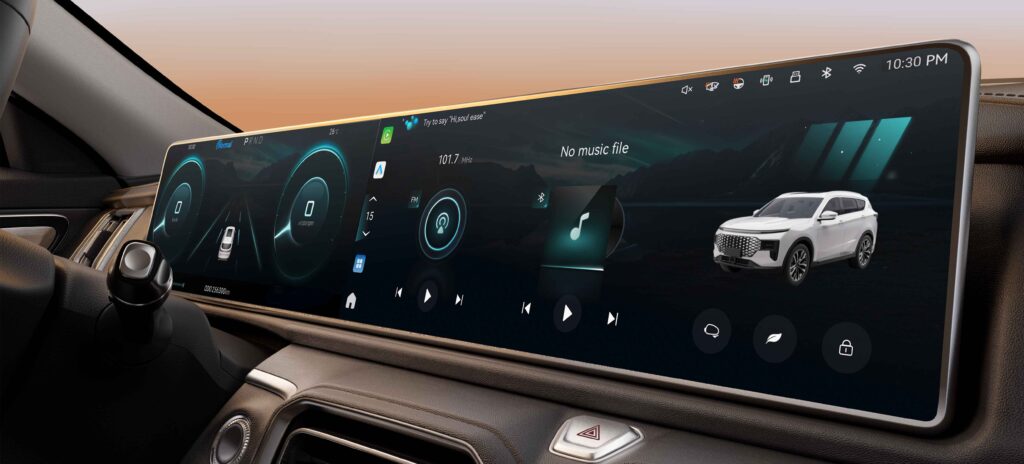 داخلية Soueast SO7 تتمتع بتصميم عصري ومواد عالية الجودة، مع لوحة قيادة رقمية بالكامل تتضمن: