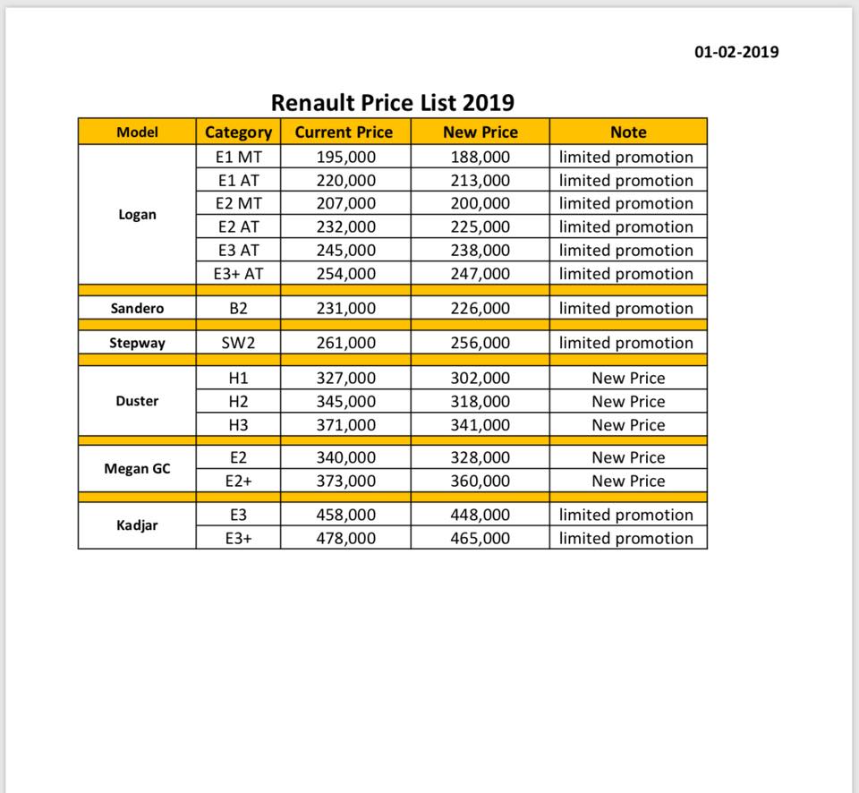 وفيما يلى قائمة بأسعار جميع طرازات رينو بعد التخفيض.