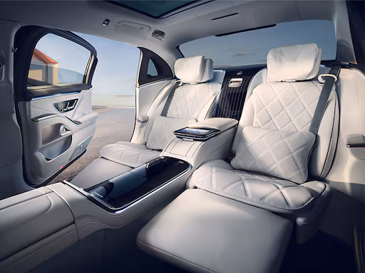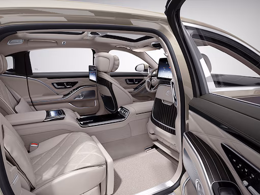 بمجرد فتح أحد الأبواب الخلفية (إما يدويًا أو من خلال نظام المساعدة الكهربائية المتاح)، تتضح المساحة الداخلية الشبيهة بالليموزين ويتبلور سبب وجود مايباخ: إنها ملاذ للرفاهية، مع مواد وتشطيبات وميزات تضاهي تلك الموجودة في أغلى سيارات السيدان الفاخرة. هذه السيارة الأكثر فخامة من الفئة S هي أقرب شيء إلى خزان عزل حسي على أربع عجلات؛ فهي تكاد تطفو على الطريق.