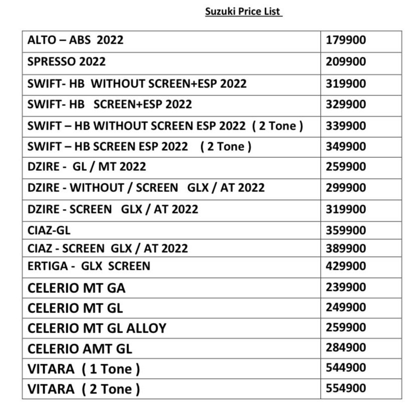 سوزوكي تعلن قائمة أسعار شهر سبتمبر 2022