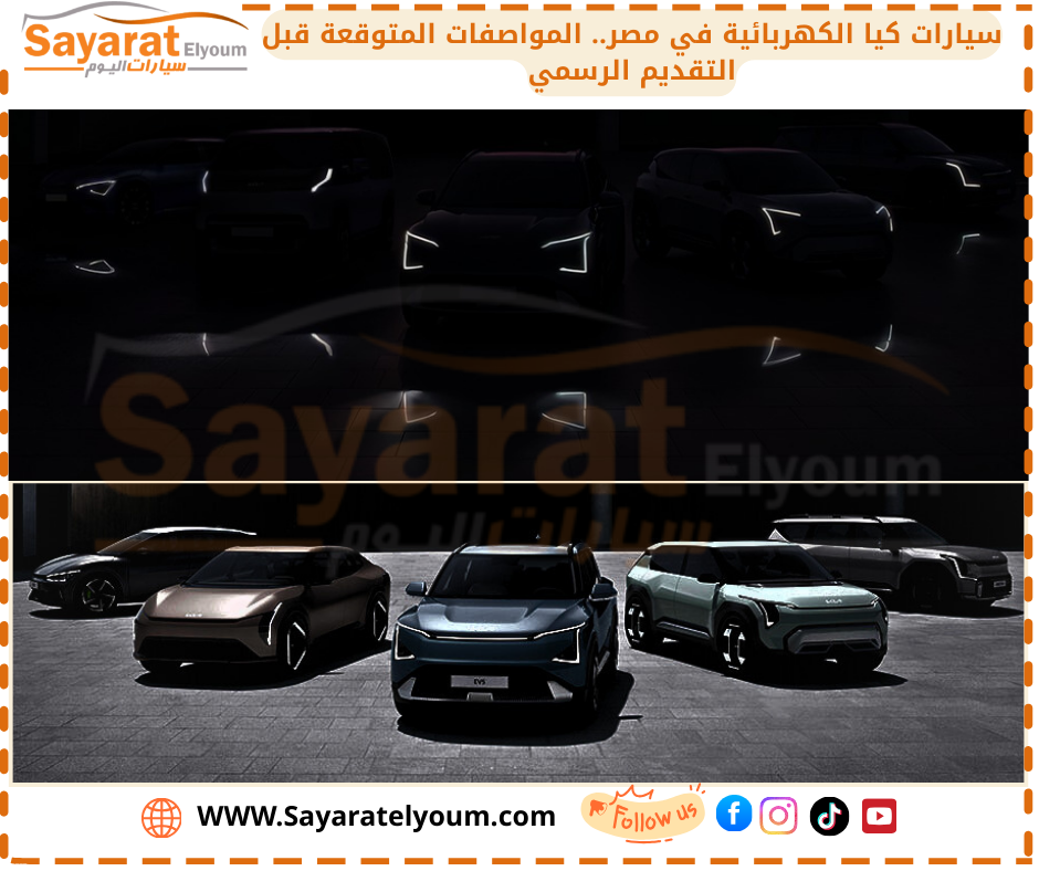 وقد نشرت الصفحة الرسمية لـ كيا مصر صورة تشويقية تحتوي على 5 سيارات كهربائية بظلال داكنة ومصابيح أمامية مضيئة، في إشارة واضحة إلى الطرازات التي ستُطرح قريبًا.