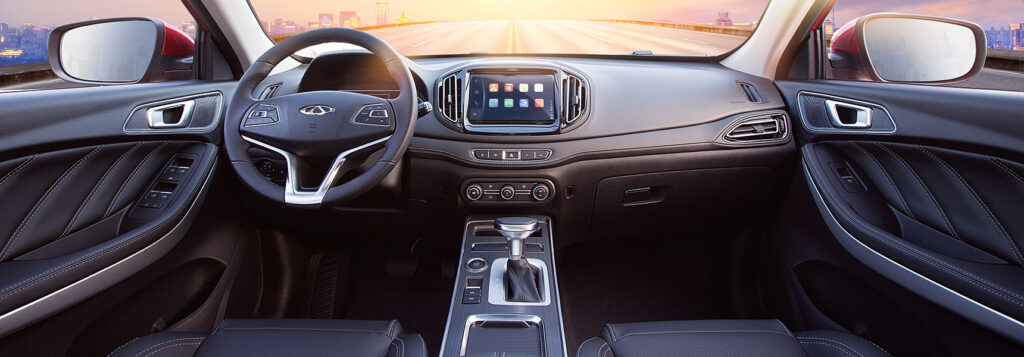 تم تصميم المقصورة الداخلية في تيجو 7 لتكون مريحة وعملية، حيث تأتي بمواد ذات جودة عالية تعزز من تجربة القيادة. المقاعد مريحة ومدعمة، مع مساحة رحبة لراحة الركاب، بالإضافة إلى شاشة ترفيهية متطورة توفر ميزات حديثة مثل Apple CarPlay وAndroid Auto، مما يتيح للمستخدمين سهولة الوصول إلى التطبيقات والموسيقى أثناء القيادة.