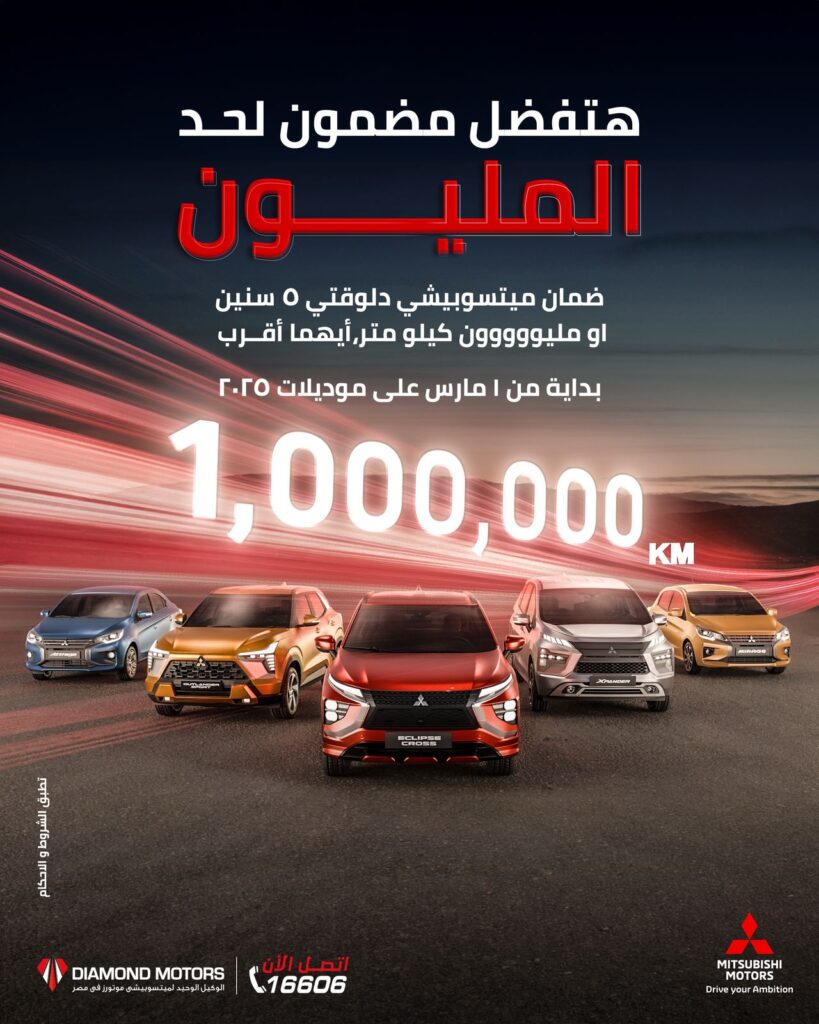 وفي هذا السياق، قدمت شركة دايموند موتورز، الوكيل الحصري لسيارات ميتسوبيشي موتورز في مصر، عرضًا غير مسبوق في السوق المصري يتمثل في ضمان يمتد إلى 5 سنوات أو مليون كيلومتر (أيهما أقرب).