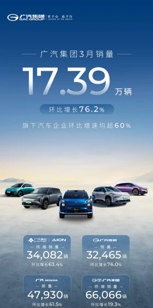 وصل إجمالي مبيعات مجموعة GAC خلال شهر مارس إلى 173,900 سيارة، وهو رقم يعكس النمو القوي الذي حققته الشركة على مدار الشهر. هذا الأداء المتميز يأتي نتيجة الإقبال الكبير على طرازاتها المتنوعة، التي تلبي احتياجات مختلف شرائح العملاء، سواء في فئة السيارات الكهربائية، الهجينة، أو التقليدية.