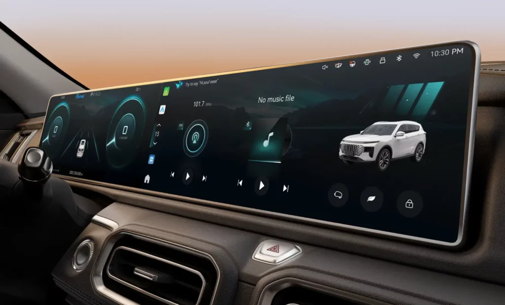 • شاشات مزدوجة بحجم 12.3 بوصة، تعرض المعلومات بوضوح وسلاسة.