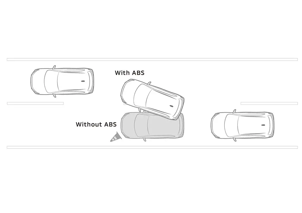 - ABS: نظام الفرامل المانع للانغلاق يمنع انغلاق العجلات أثناء الكبح المفاجئ.