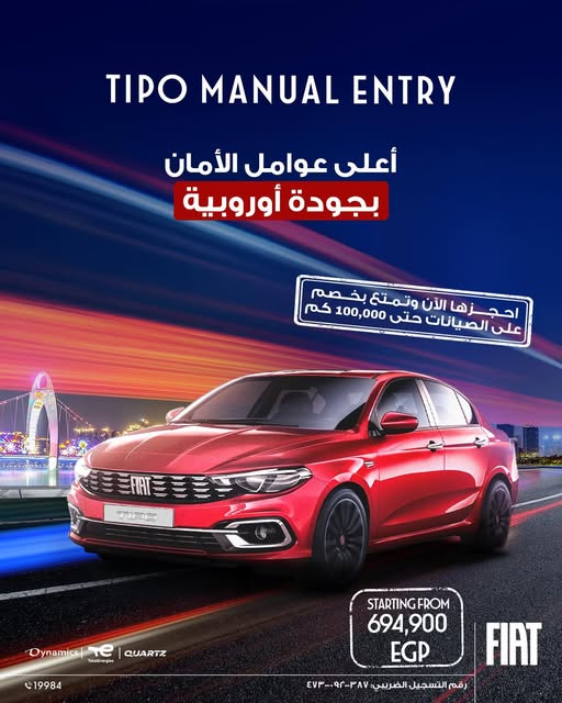 كل هذا يأتي بسعر يبدأ من 694,900 جنيه مصري فقط، مما يجعلها فرصة مثالية للحصول على سيارة ذات جودة إيطالية وتصميم عصري بسعر منافس.