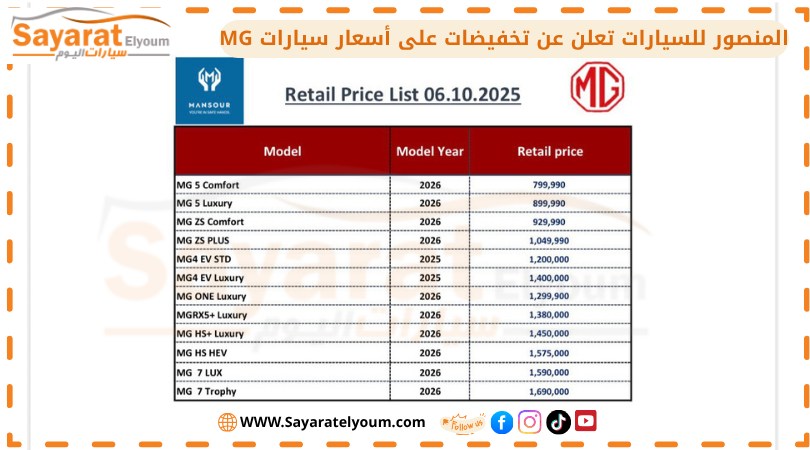 - دعم الوكيل: المنصور للسيارات، وكيل MG في مصر، يقدم خدمات ما بعد البيع بشكل جيد، مع شبكة مراكز خدمة واسعة.