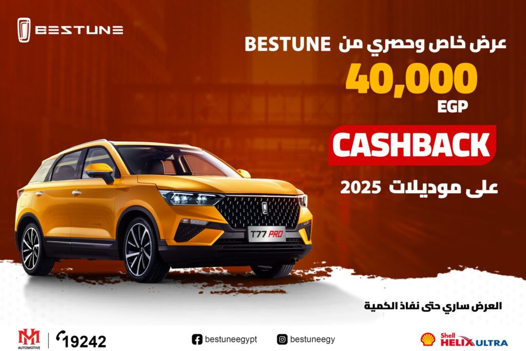 مع انطلاق شهر فبراير أعلنت شركة مصر حلوان الوكيل المحلي لسيارات بستيون، العلامة الرائدة في عالم السيارات الفاخرة، عن طرح عرض مذهل لعشاق القيادة في مصر. العرض يتضمن كاش باك بقيمة 40,000 جنيه عند شراء أي من موديلات الشركة المميزة لعام 2025، والتي تشمل: T55، T77، B70، وB70s.