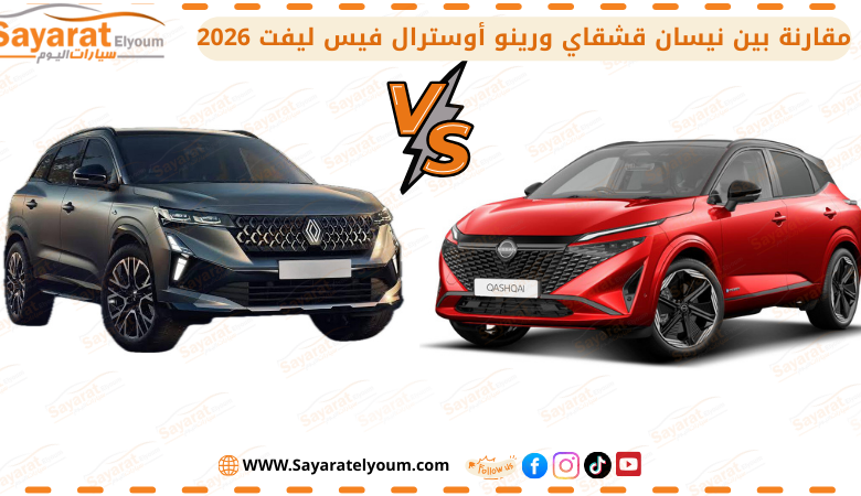 مقارنة بين رينو أوسترال ونيسان قشقاي فيس ليفت 2026