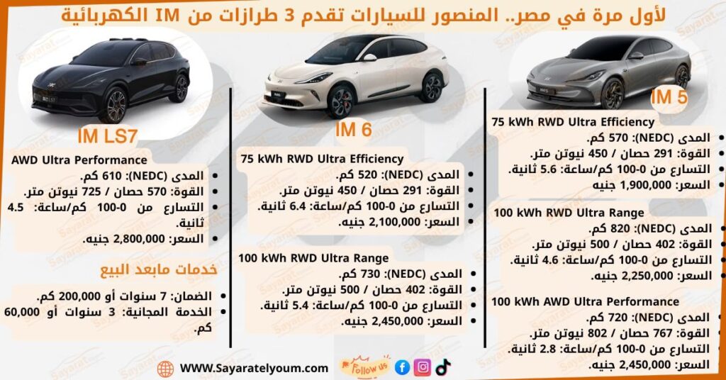 ويمنح تواجد المنصور للسيارات ثقة إضافية لطرازات IM الجديدة، خاصة مع امتلاكها شبكة واسعة من مراكز الخدمة ونقاط الصيانة المعتمدة، إلى جانب خبرتها في التعامل مع التقنيات الحديثة ومنظومات السيارات المتطورة، وهو ما يعزز من فرص انتشار سيارات IM الكهربائية وتقديم تجربة امتلاك مستقرة للمستهلك المصري.