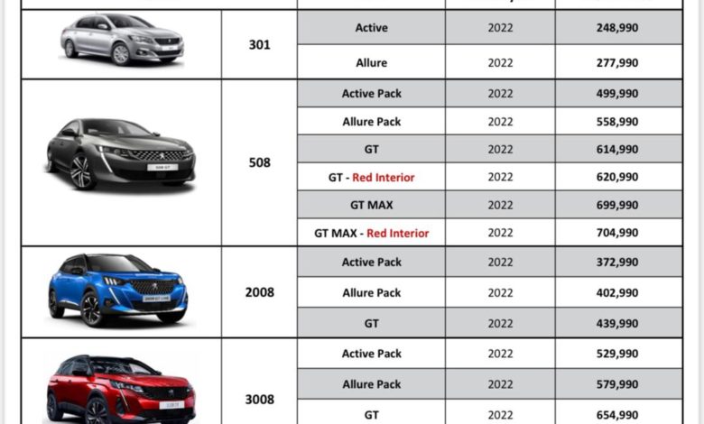 ننشر أحدث قائمة سعرية لسيارات بيجو خلال شهر فبراير 2022