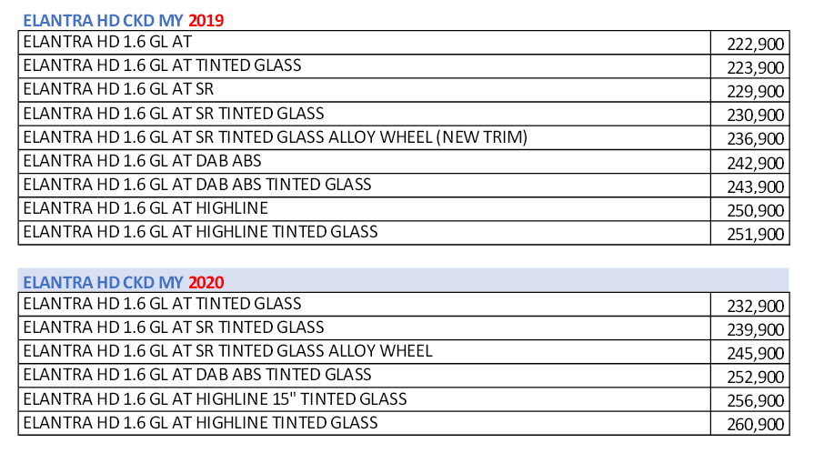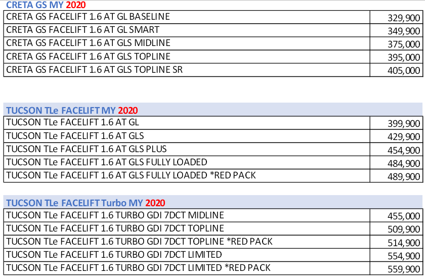 وشملت القائمة عدد من موديلات هيونداي منها أكسنت وتوسان وكريتا والنترا ad والنترا HD وهيونداي i10 وهيونداي h1 وسنتافي.
