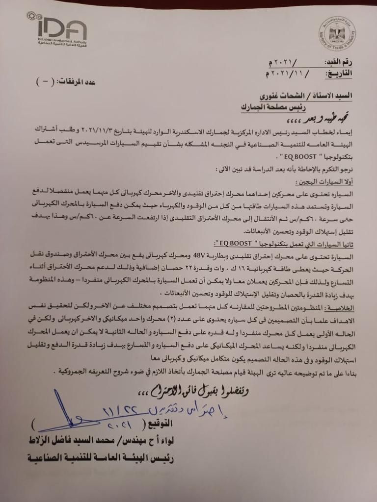 خطاب مثير للجدل أصدرته شركة مرسيدس بنز إيجيبت وموجها إلى ” الجمارك ” يحمل في طياته شرح ومواصفات للسيارات ماركة مرسيدس من نوعية أو طراز  EQ BOOST ، ويتضمن الخطاب فقرات تتلخص في كون هذه السيارات ليست كهربائية وليست هجين ” هايبرد ” وأنها  تحمل ما يسمى ” معزز ” كهربائي له العديد من الوظائف الأخرى التي لا تتضمن الدفع  ، كما أكد الخطاب على أن هذه النوعية من سيارات مرسيدس لا تحمل محرك دفع كهربائي نهائيا ولا تنتمي للسيارات الهجين ” هايبرد “.