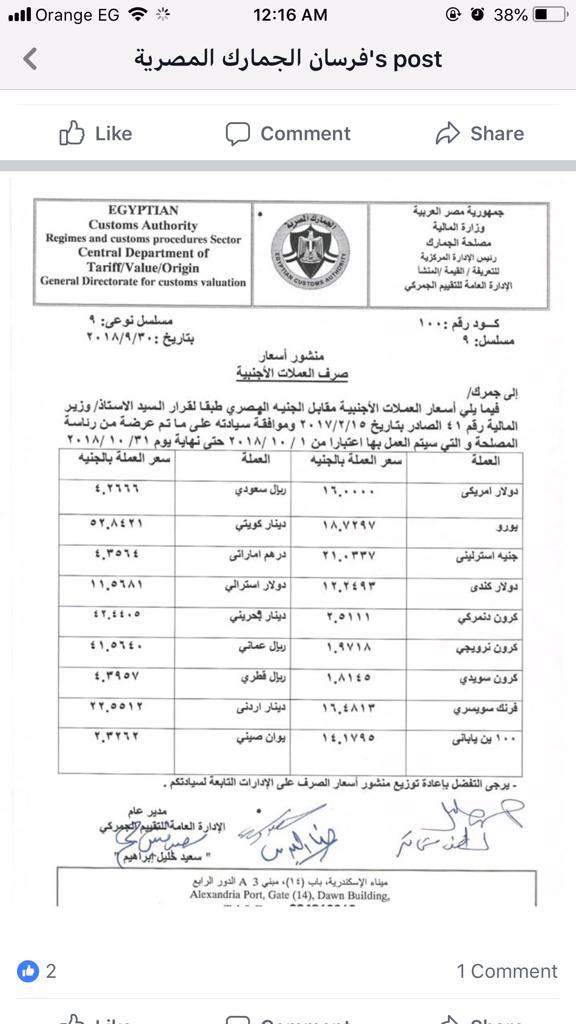 أعلنت وزارة المالية، تثبيت سـعر الدولار الجمركي عند ١٦ جنيها بداية من اليوم الأثنين أول أكتوبر حتي 31 أكتوبر 2018.