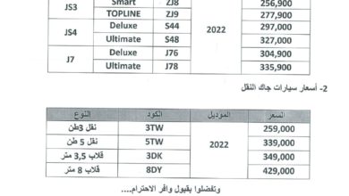 ننشر أحدث قائمة سعرية لسيارات جاك في مصر