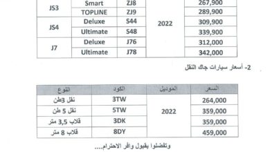 ننشر أحدث قائمة سعرية لسيارات جاك في مصر