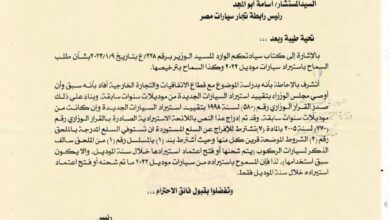 أكد المستسار أسامة أبو المجد – رئيس رابطة تجار السيارات – أن رفض وزارة الصناعة التجارة السماح بإدخال موديلات 2022…