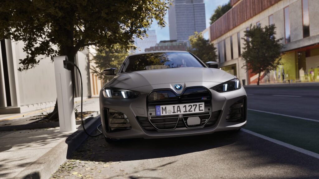تتميز BMW i4 M60 xDrive بتصميم خارجي جذاب يجمع بين الطابع الرياضي واللمسات الفاخرة: