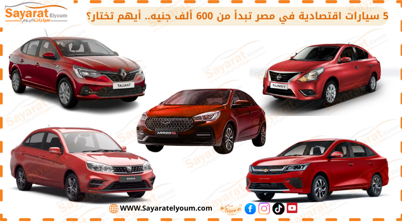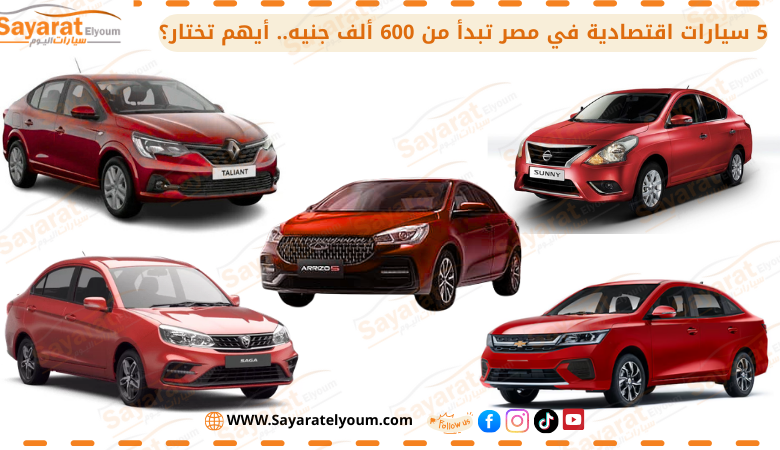 بسعر يبدأ من 600 ألف جنيه 5 سيارات اقتصادية في مصر.. أيها أنسب لاحتياجاتك؟