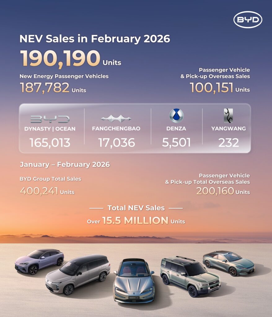 حصيلة مبيعات BYD في فبراير 2026.. 190 ألف مركبة طاقة جديدة في شهر واحد