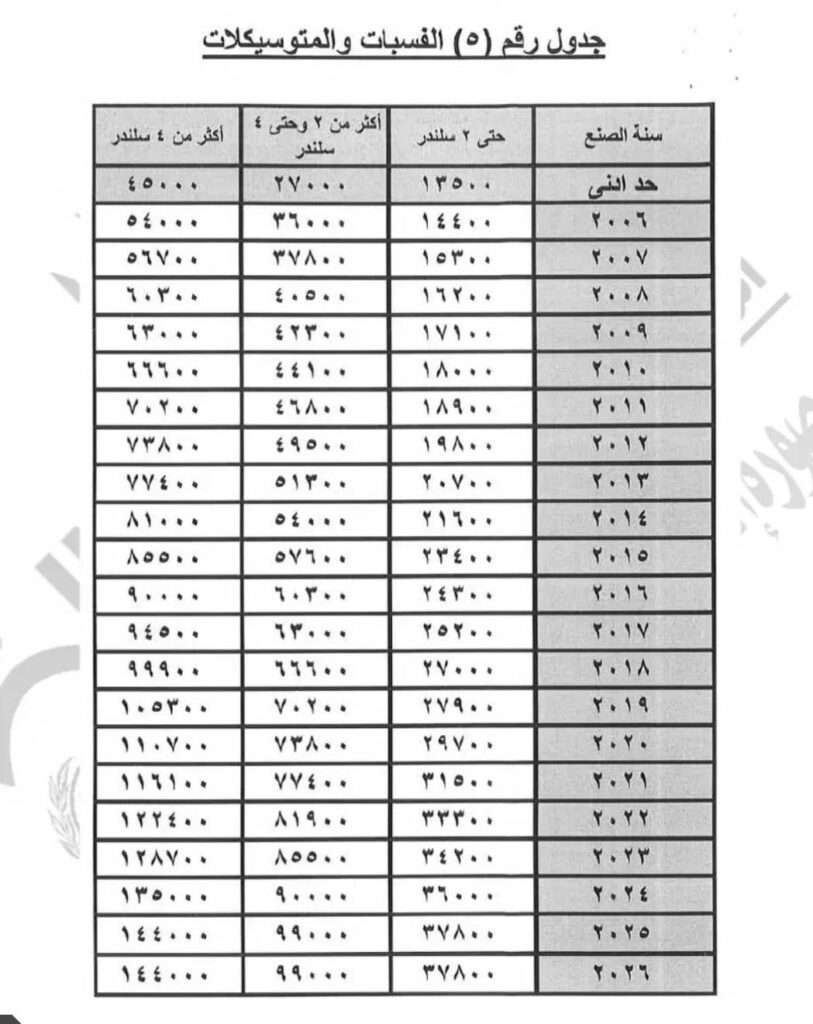 ندعو جميع المواطنين والمستثمرين في قطاع السيارات إلى الاطلاع على هذه الجداول بعناية قبل إتمام أي عملية بيع أو شراء، لضمان الالتزام بالقوانين وتفادي أي رسوم إضافية أو تأخيرات في الإجراءات.