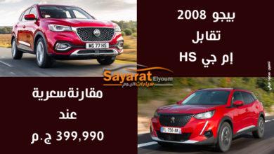 مقارنة بيجو 2008 مع إم جي HS بسعر 399,990 جنيه في السوق المصري
